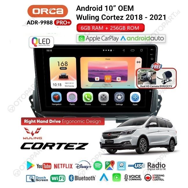 Head Unit Android Wuling Cortez 2018-2021 Orca 9988 G2 NFC PRO+ DVR QLED