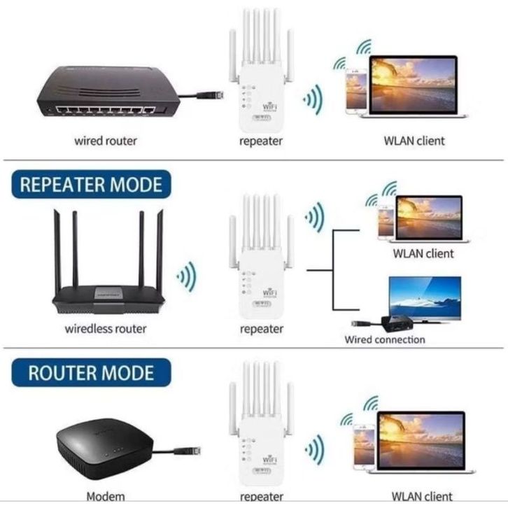 6 Antena Kuat WiFi Repeater Penguat Sinyal Wifi 1200Mbps Wireless WiFi Signal Range Extender Signal Booster