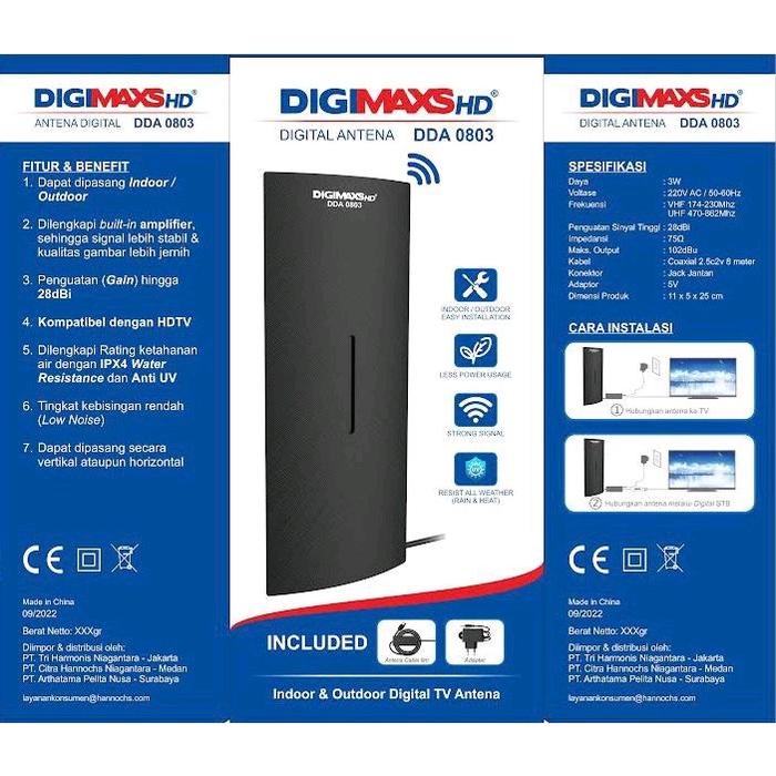 Antena TV Digital DIGIMAXS HD DDA 0803 Indoor Outdoor Kabel 8M - - - - - - -