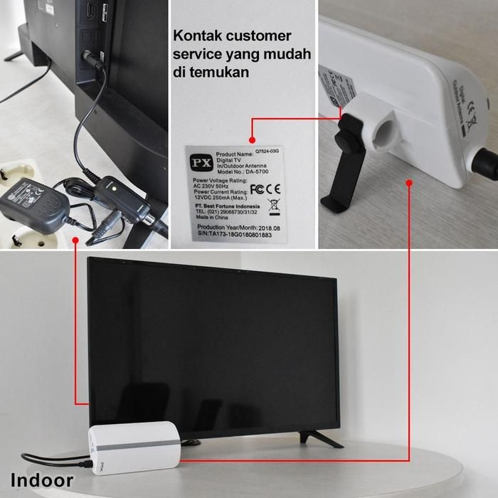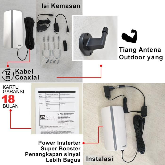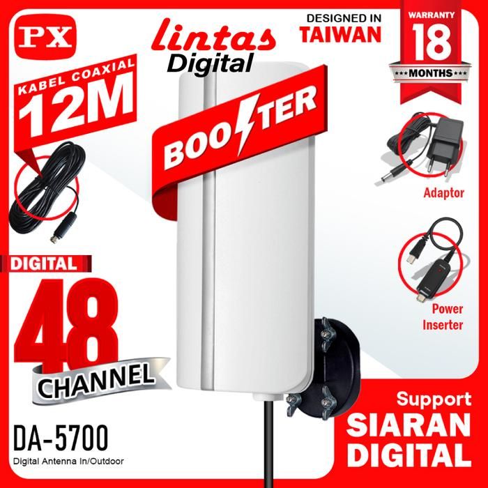 Antena TV Digital Analog PX DA-5700 Kabel 12M Booster Indoor- Outdoor