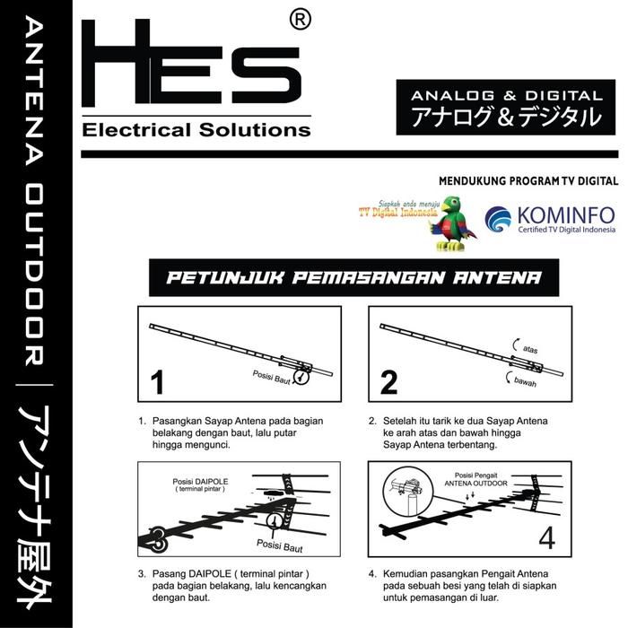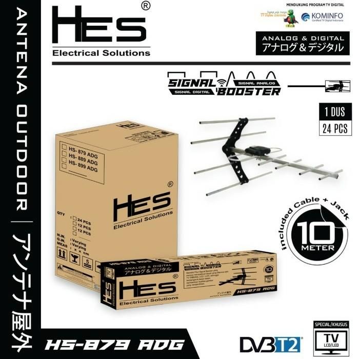 HES 879 ANTENA TV DIGITAL OUTDOOR HES HS-879 + KABEL 10 METER luar