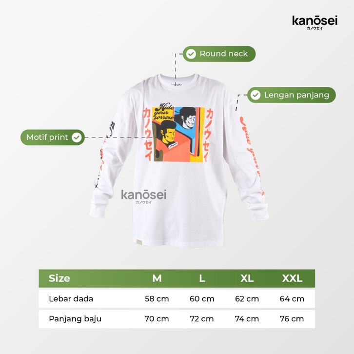 Kaos Pria Distro Bandung Kanosei Longsleeve T Shirt Hide Your Sorrow Baju Lengan Panjang Kaos Distro Pria Wanita Terlari