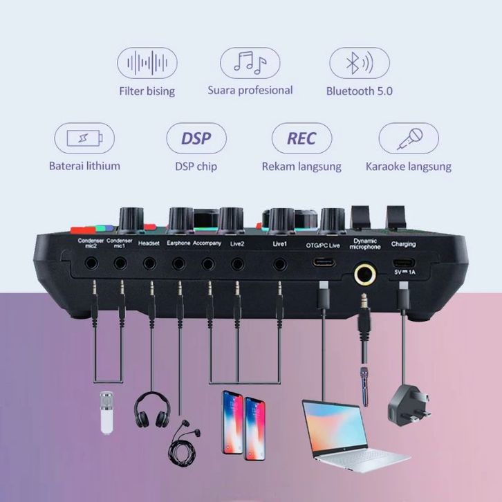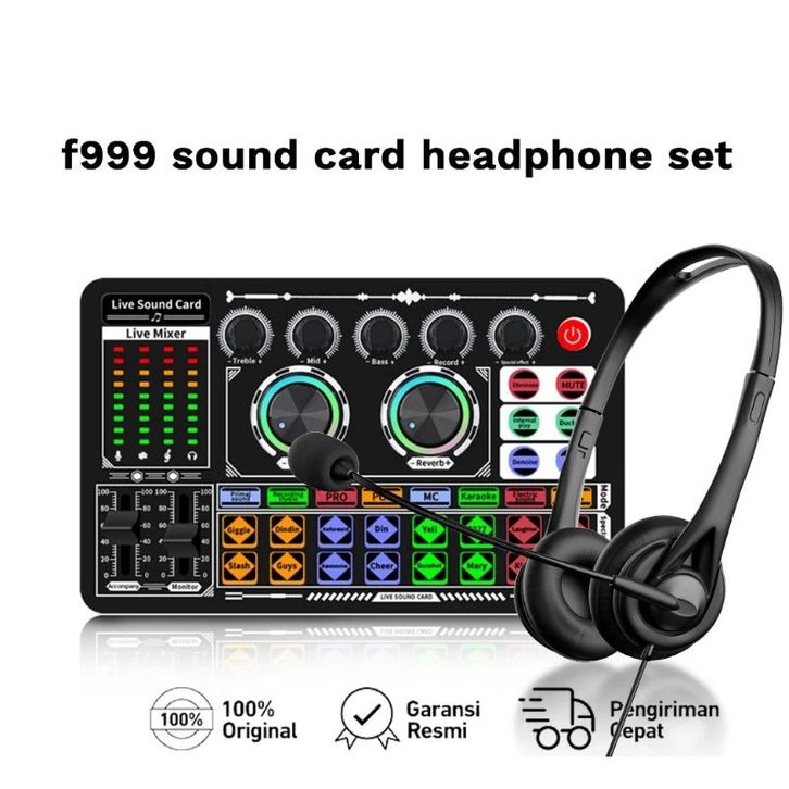 Paket Sound Card F999-SY490 Set Peralatan Live Streaming dan Karaoke Plus Headphone