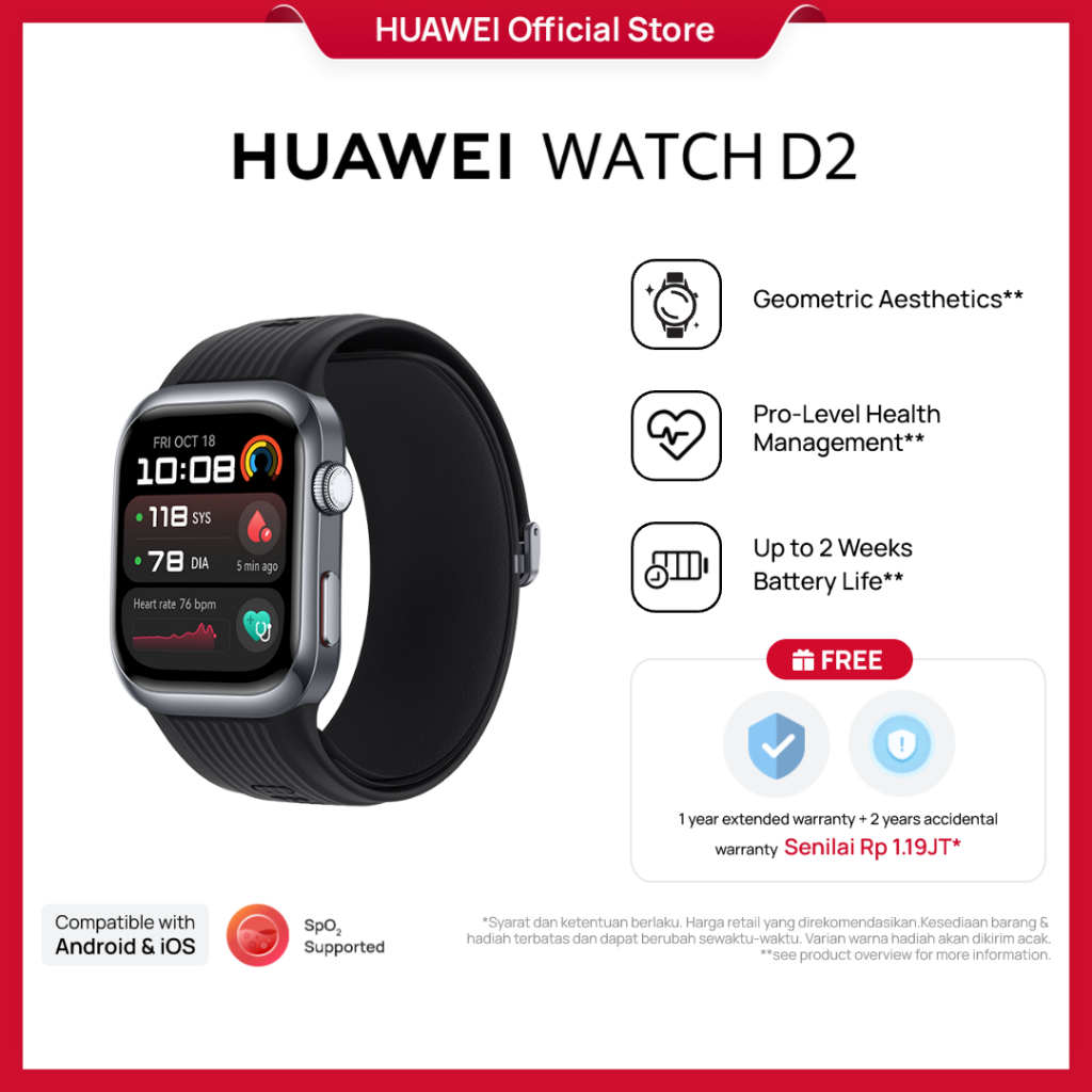 HUAWEI WATCH D2 Smartwatch | 24-hour Ambulatory Blood Pressure Monitoring | Light and Slim Design | All-Round Health
