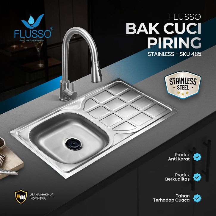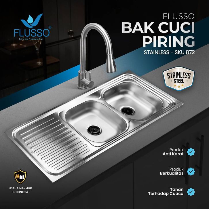 PROMO Flusso Stainless Steel Kitchen sink Modern Kitchen Sink Bak Cuci Piring Ketebalan 3.0mm SUS304 ecimnmn