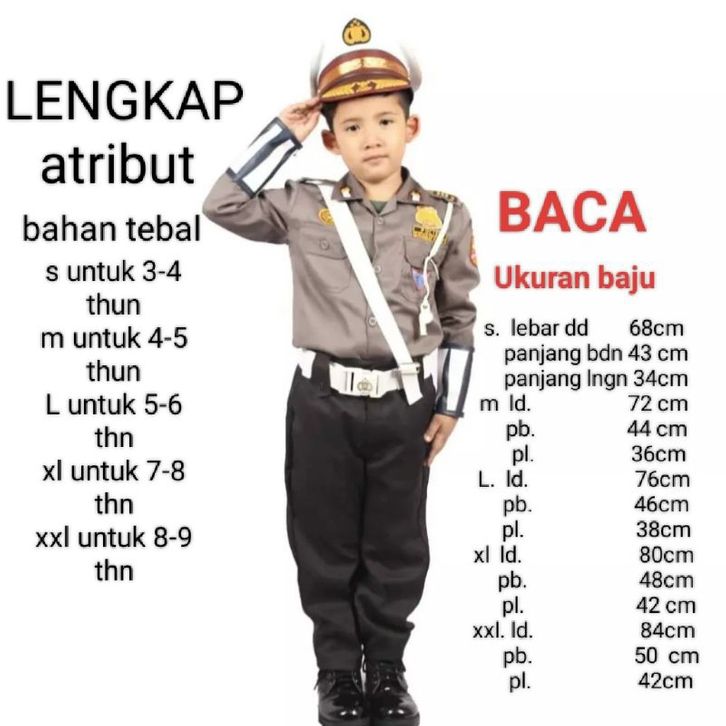 baju karnaval anak SERAGAM POLISI ANAK TK/paud LENGKAP+ATRIBUT GLOSIR Bahan tebal Terlaris