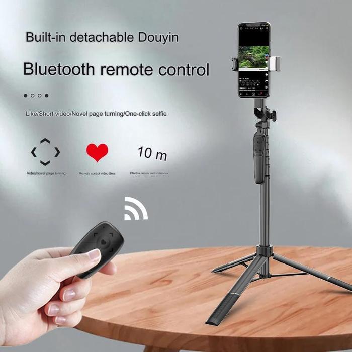 Tongsis A66 Phone Selfie Stick LED 360° Tripod HP Live 160CM + Remote