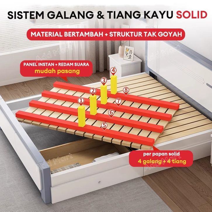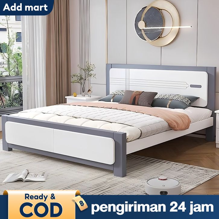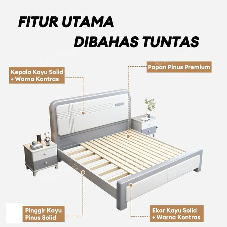 Ranjang Tempat Tidur Dewasa Divan Kayu Rangka Tempat Tidur Dipan Kasur Abu-abu Biru Modern Minimalis 120 180