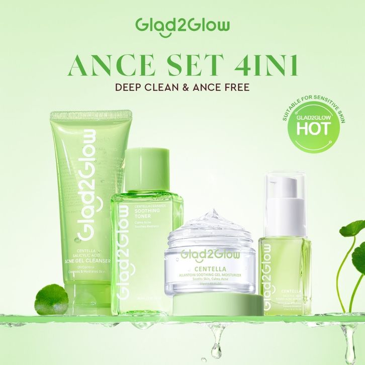【5IN1 ACNE SET】Glad2Glow Acne Care bundle all in 1 - 3/4/5 PCS Skincare Paket-Soothing toner+Centella Moisturizer+ Cent