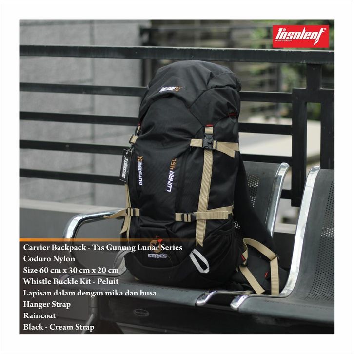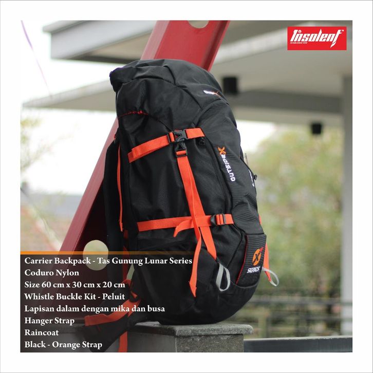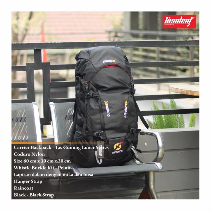 tas carrier Insolent - TAS RANSEL CARRIER LUNAR SERIES GUNUNG CAMPING OUTDOOR BACKPACK 36 L RAIN COAT PELUIT WHISTLE