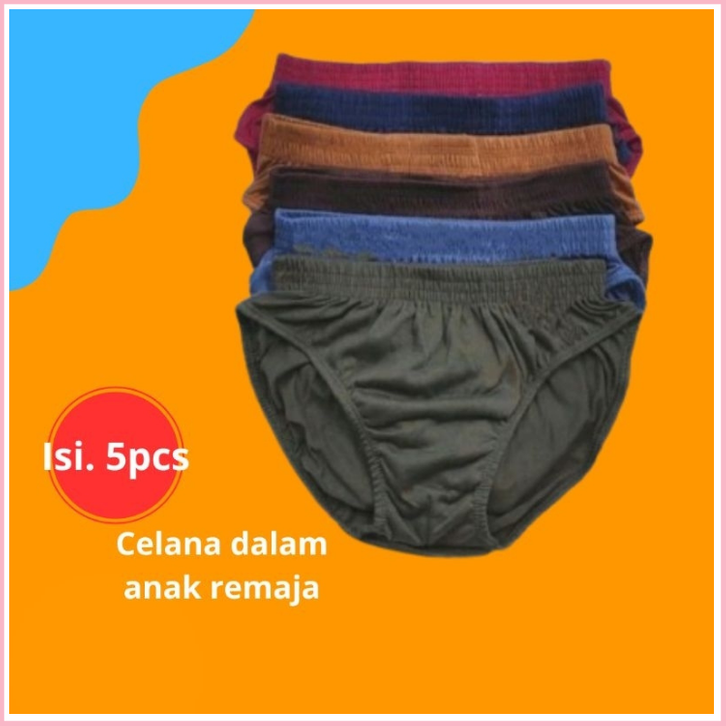 5 Pcs Celana Dalam Anak Remaja Sd/Smp Motif Polos Cd Anak Tanggung Laki-Laki Usia 7 Sampai 16 Tahun Termurah