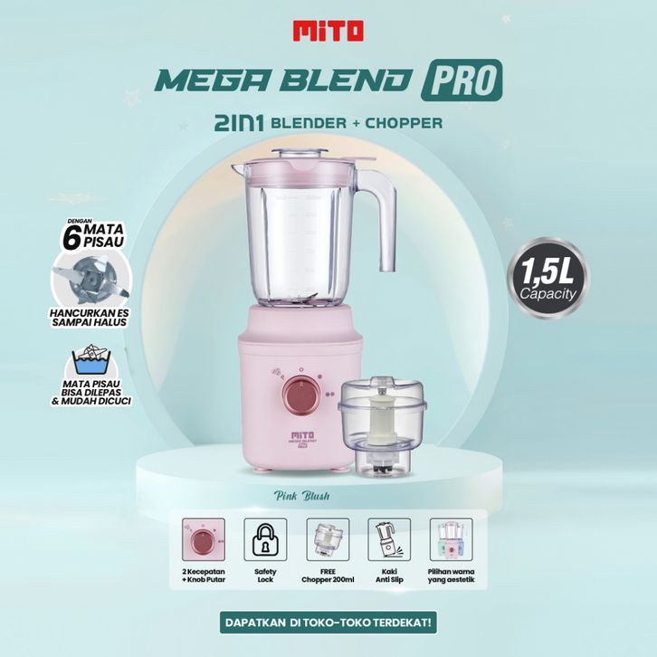 [Mall] MITO MIXER BLENDER PRO BL300 - 1,5L Jar 2 Tingkat Kecepatan + Pulse + 6 Mata Pisau dengan Ice Crusher Tebaru