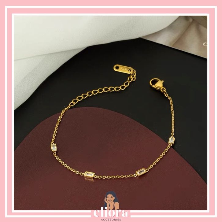 Gelang Tangan Titanium Wanita Diamond Simple Elegan Korea Fashion