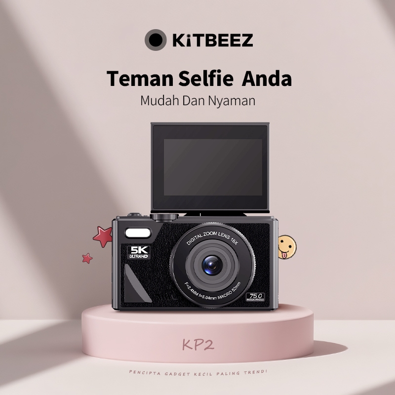 Kitbeez Kp-2 Kamera Digital Wifi 5K Hitam Putaran 180° Zoom 18X Kamera Murah Dengan Dukungan Selfie Koneksi Wifi Untuk H