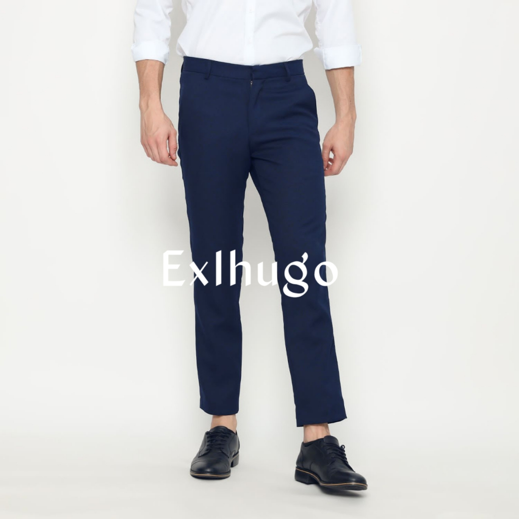 EXLHUGO - Dark blue trousers | biru dongker | celana bahan pria