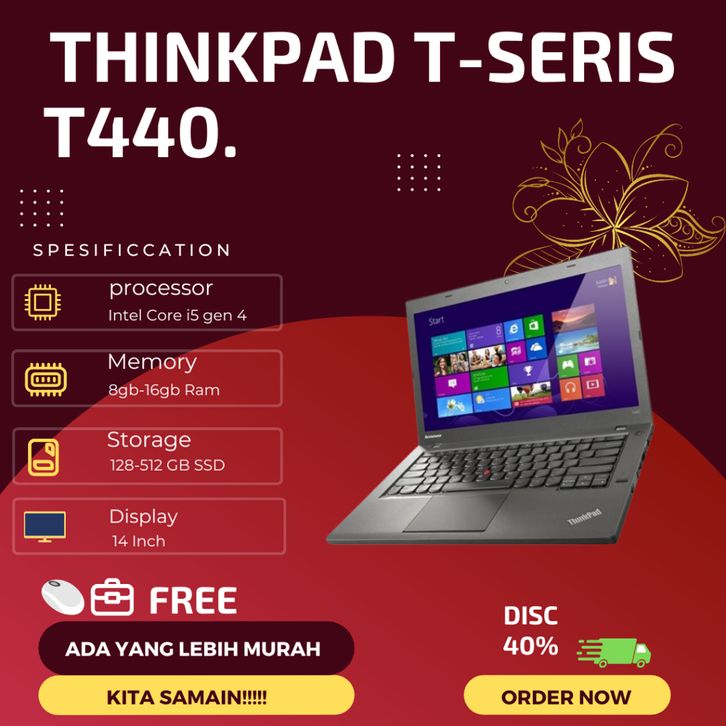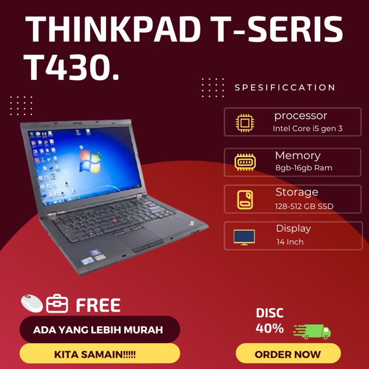 LAPTOP LENOVO THINPAD INTER CORE I5 T410 T420 T430 T440 T450 T460 T470 RAM 8 SSD 236GB BERGARANSI RESMI MURAH NO DP 2025