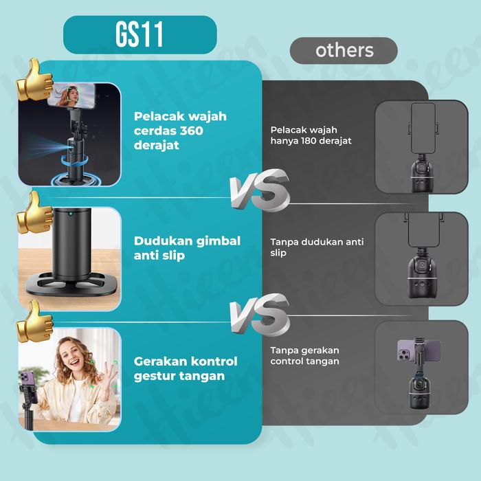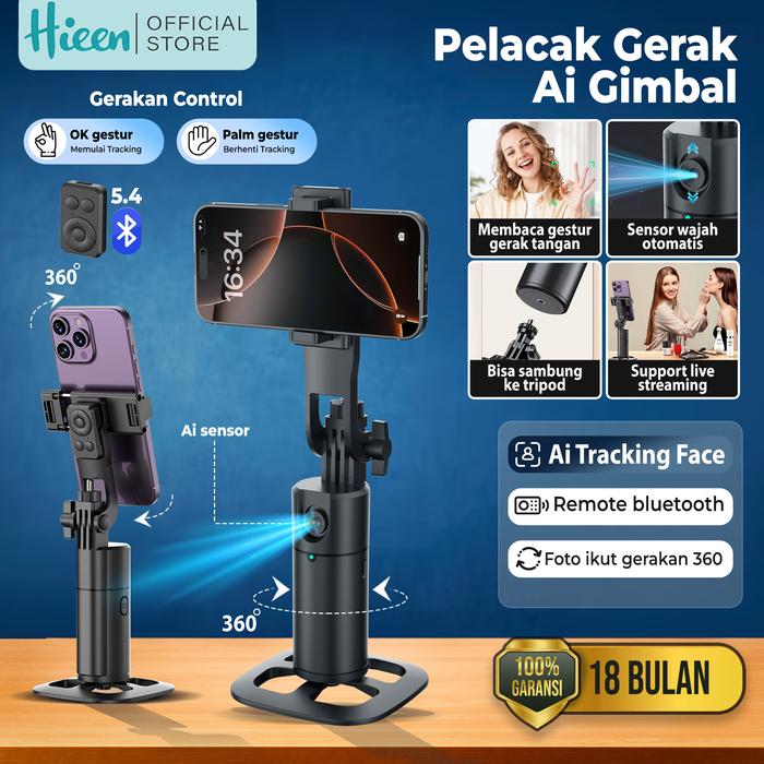Hieen Face Tracking Tripod Remote Bluetooth 5.4 Gimbal Stabilizer 360°Rotation Pelacak Wajah GS11