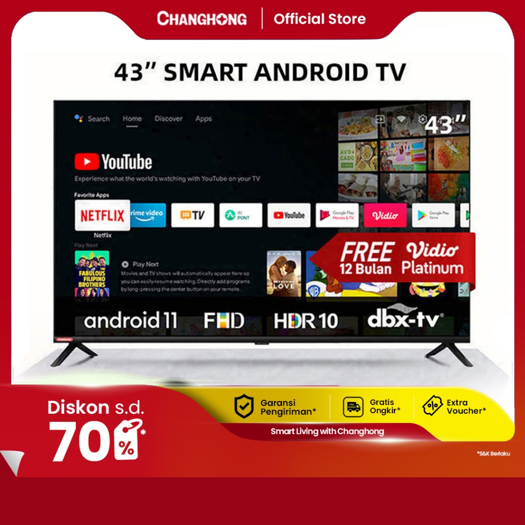 Changhong 43 Inch Newest Android 11 Frameless Smart TV Digital LED TV FHD -Netflix-Youtube-Google Playstore (L43G7N)