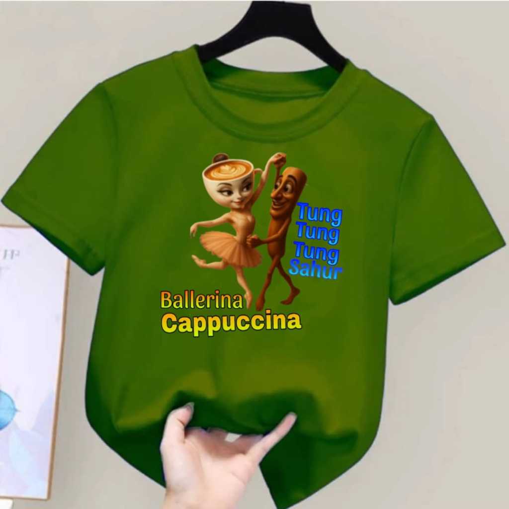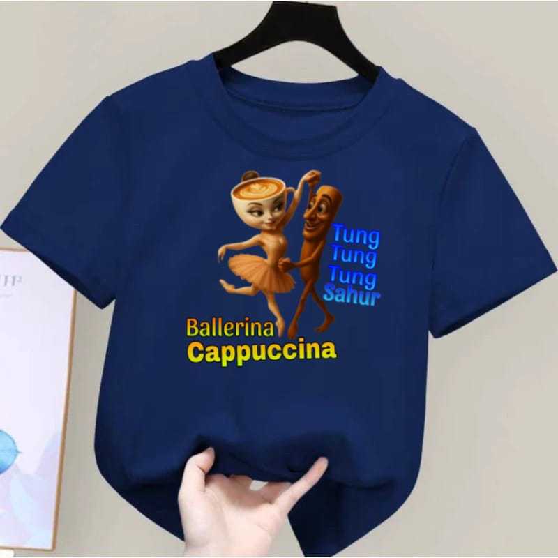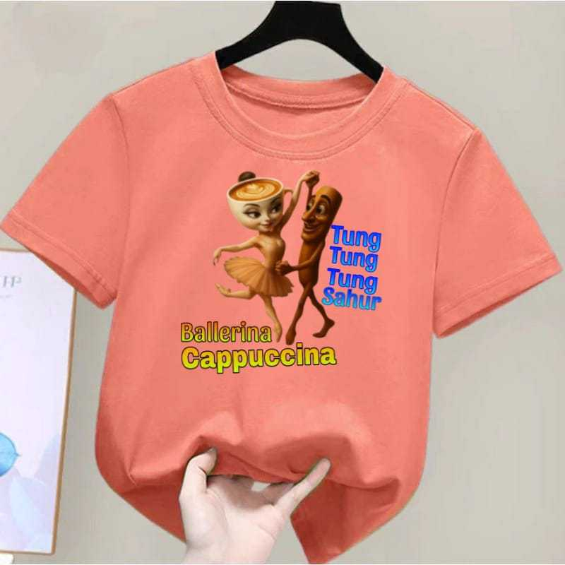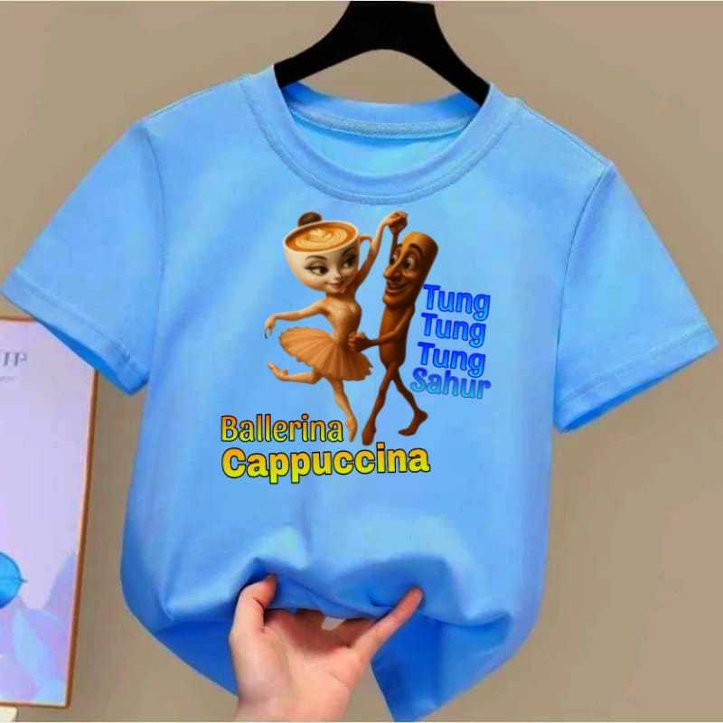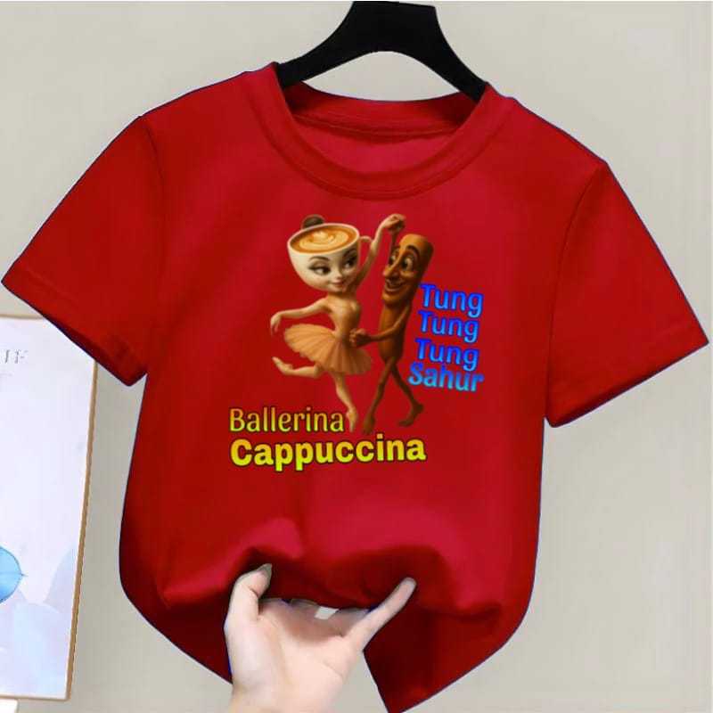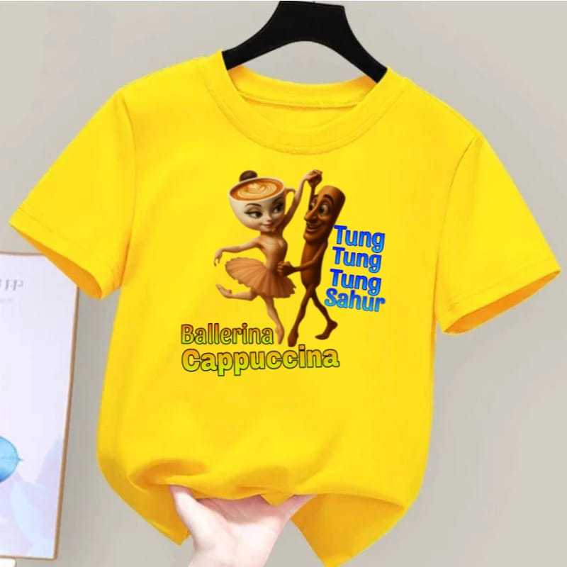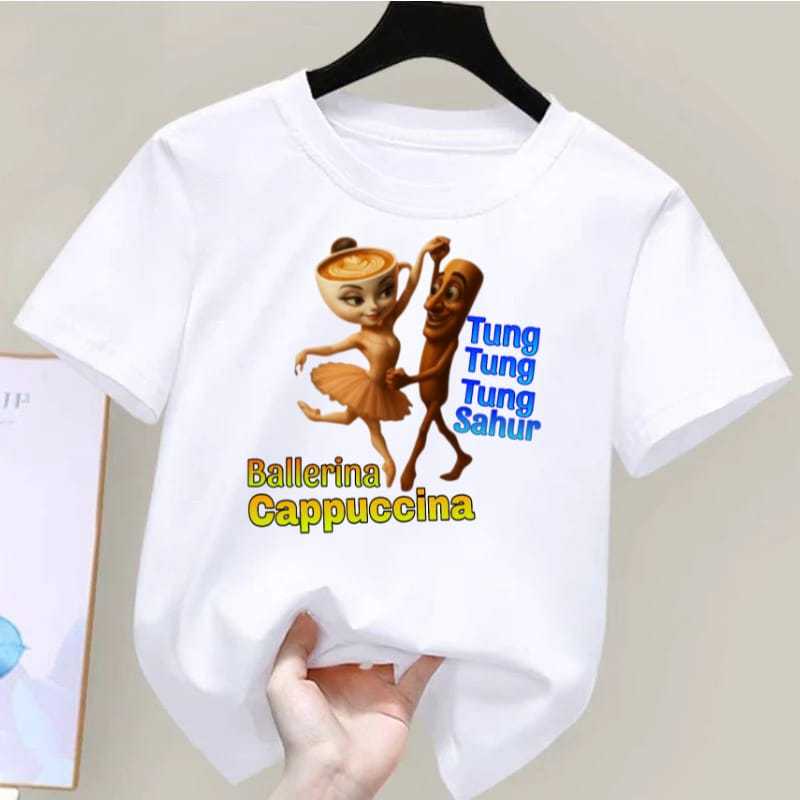 Baju Atasan Anak Viral TUNG TUNG TUNG SAHUR & BALLERINA CAPPUCCINA Pakaian Kaos Anak Unisex Usia 1-10 Tahun