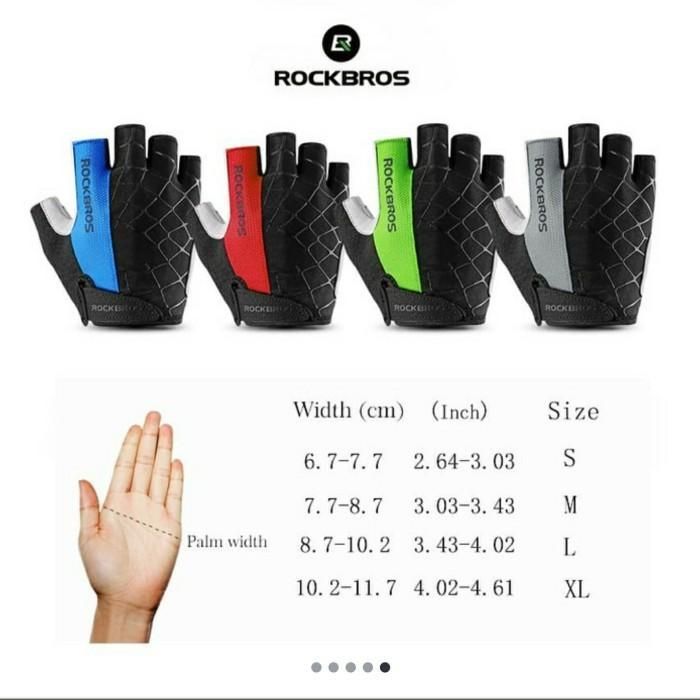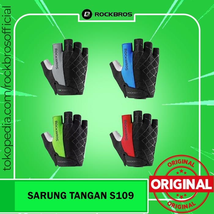 SARUNG TANGAN ROCKBROS S109 PENDEK - BIKE GLOVE HALF FINGER ORIGINAL - Merah, M