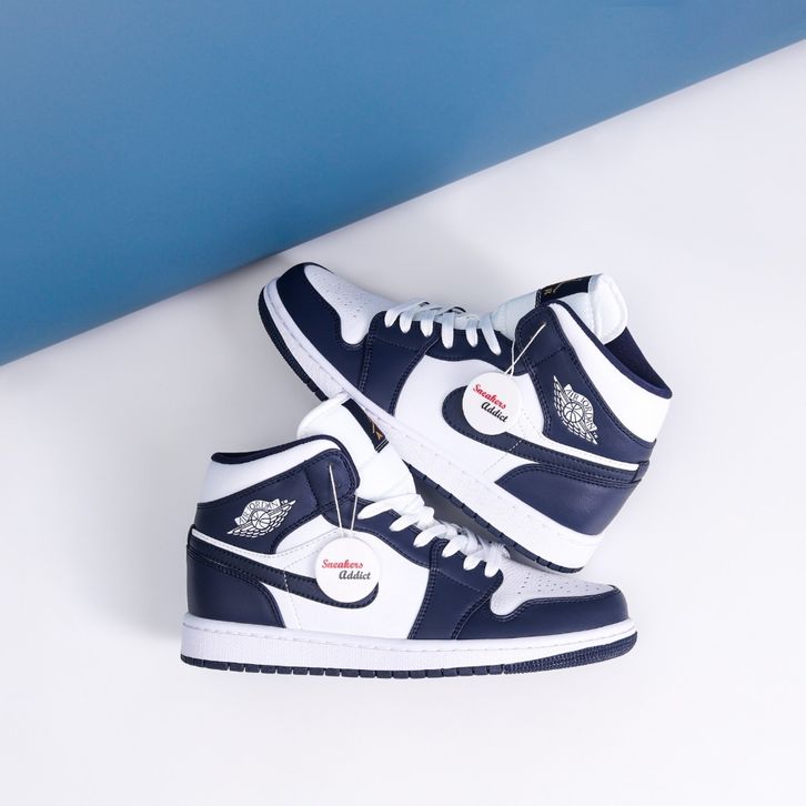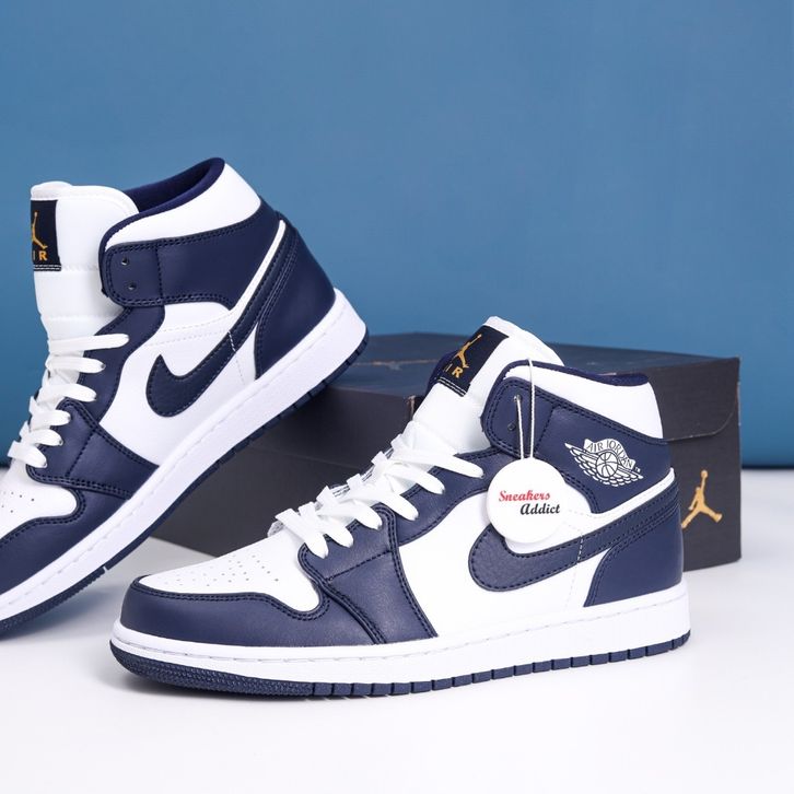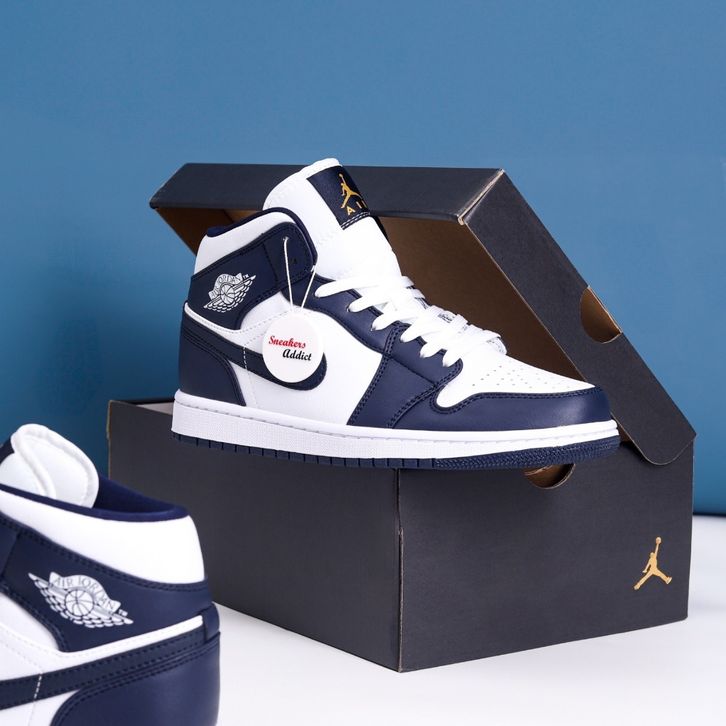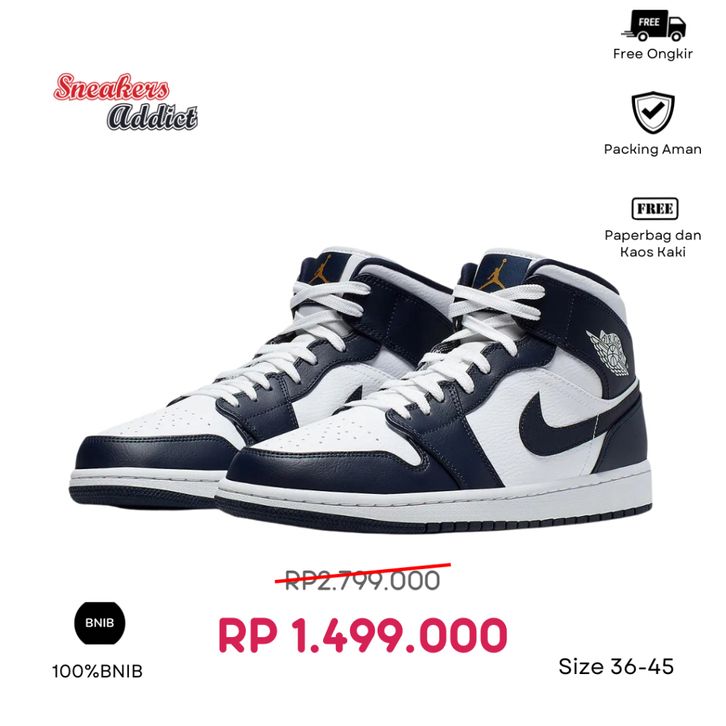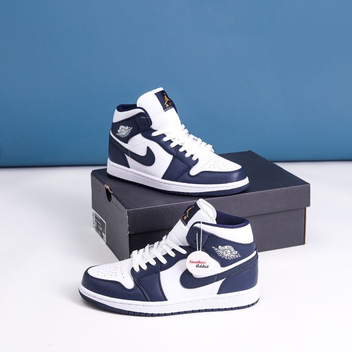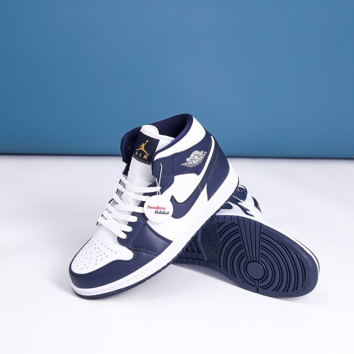 Sepatu Sneakers Nike Air Jordan 1 Mid White Gold Navy Obsidian 100% BNIB