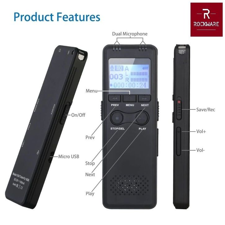 GROSIRUNIK99 ROCKWARE RW-AVR08 - Digital Voice Recorder - Perekam Suara Digital 8GB
