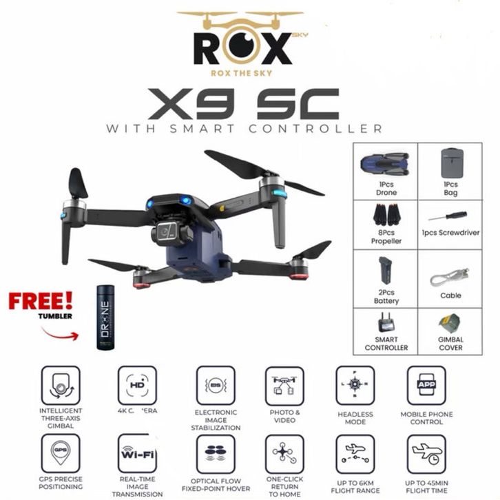 READY STOCK DRONE ROX X9 SC WITH SMART CONTROLLER GPS WITH 4K CAMERA 3-AXIS GIMBAL Jar-ak UP TO 6 KM LENGKAP SIAP