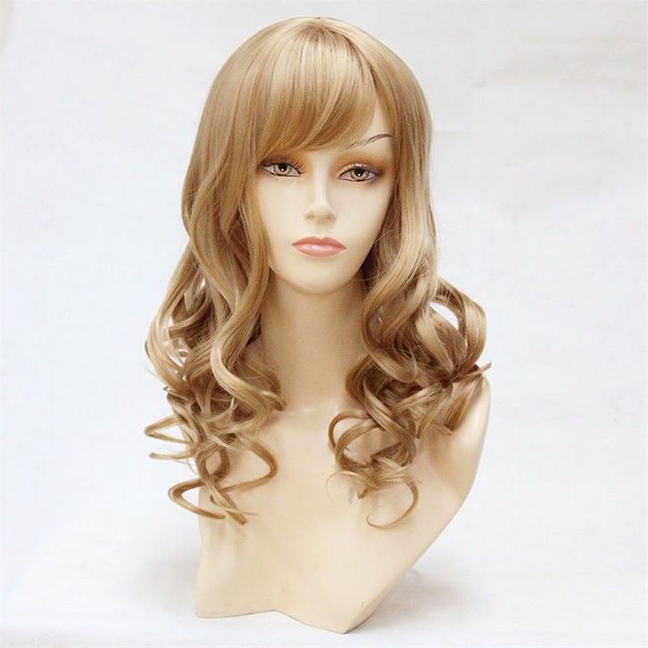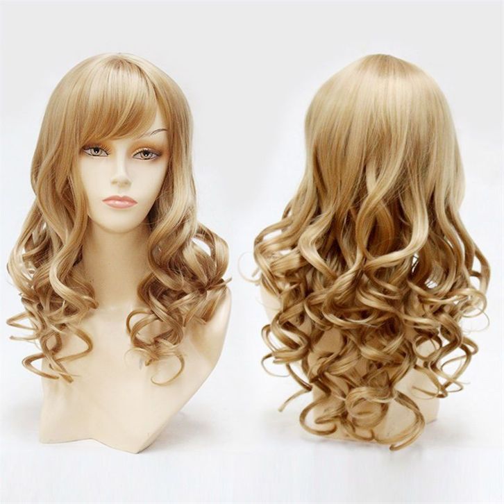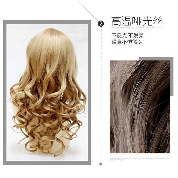 Fashion wig wanita, rambut panjang realistis tudung penuh, ikal bergelombang besar berbulu, sutra panas coklat