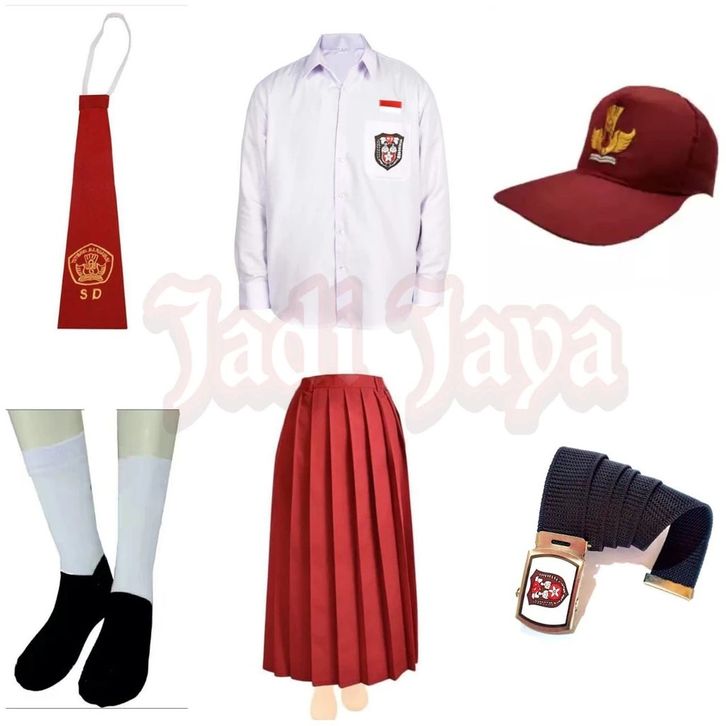 PAKET LENGKAP SET SERAGAM MERAH PUTIH SD PEREMPUAN PANJANG BAHAN ADEM
