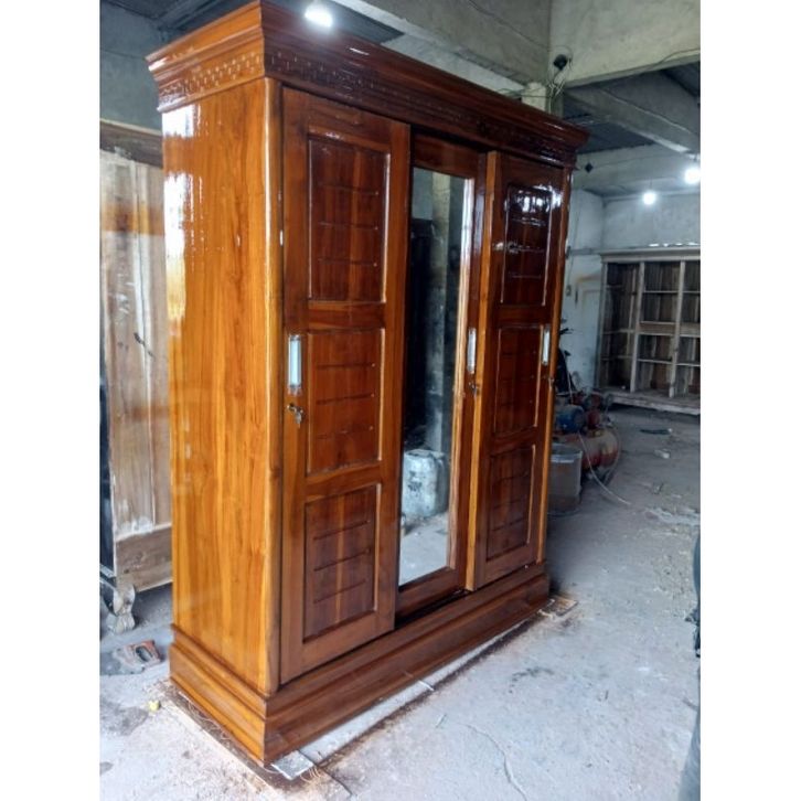 Lemari pakaian 3 pintu sliding minimalis full kayu asli jati