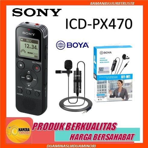 Sony ICD-PX470 Digital Voice Recorder / Alat Perekam Suara Sony PX470 PAKET BOYA BY-M1