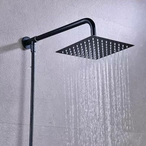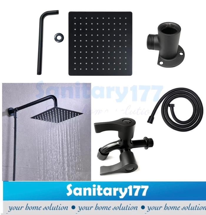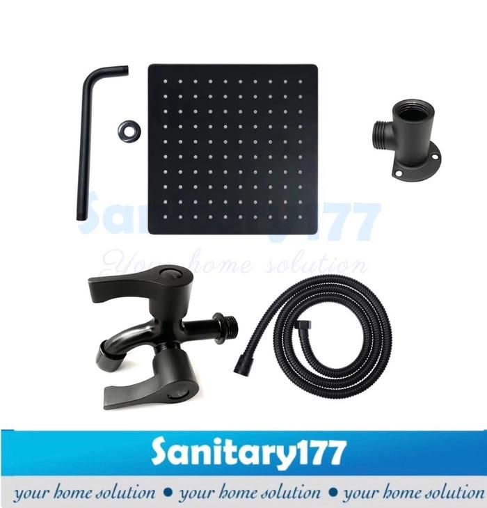 Paket Shower Tembok Rainfall Stainless Hitam 20Cm +Kran +Bracket