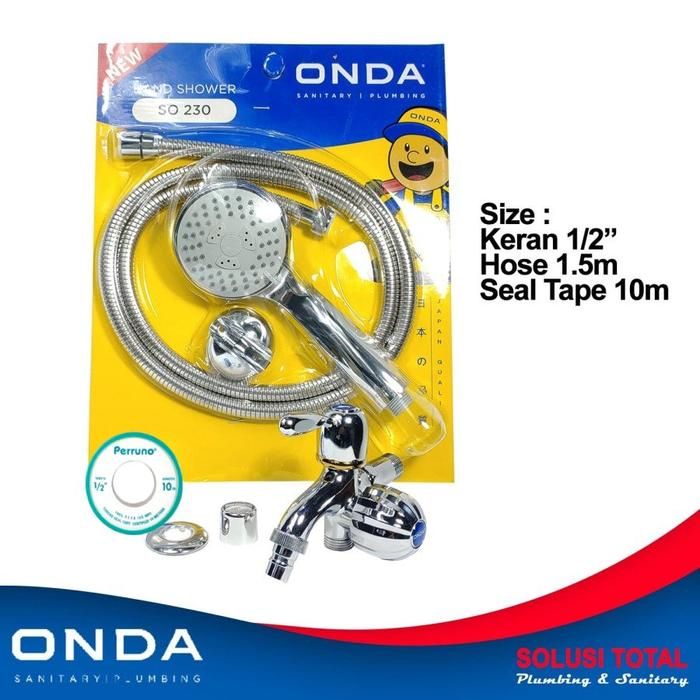 Paket 2 Shower Mandi Set Onda So 230 + Kran Double K 406 + Seal Tape