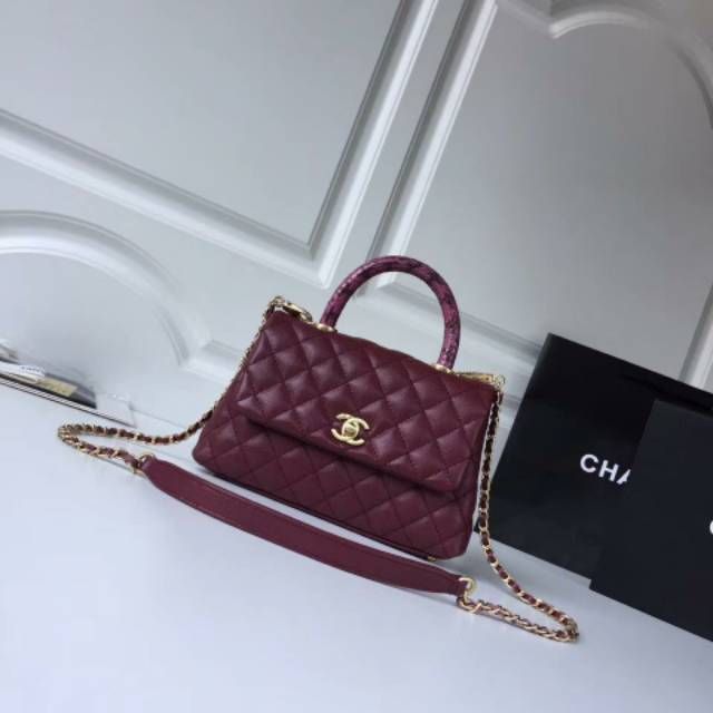 Tas branded coco handle snake mini super mirror ori leather / tas chanel top hancle coco snake mirror