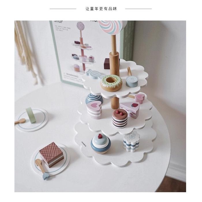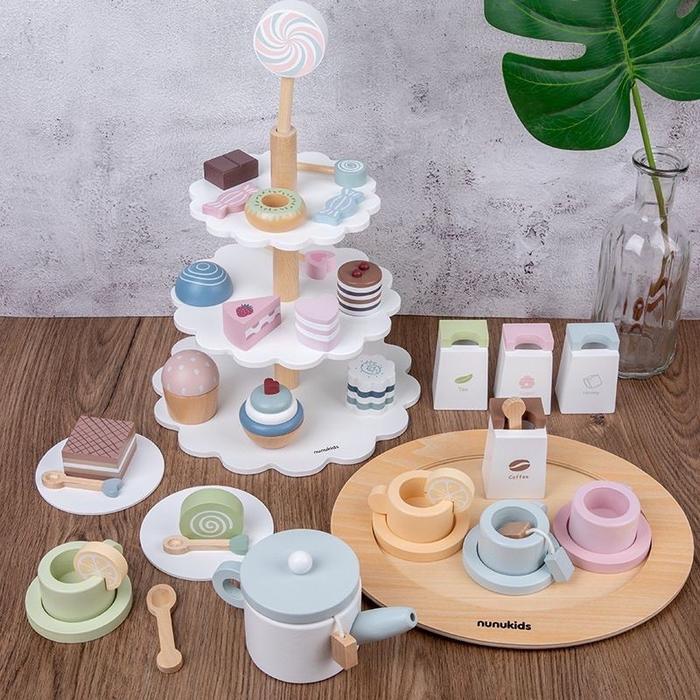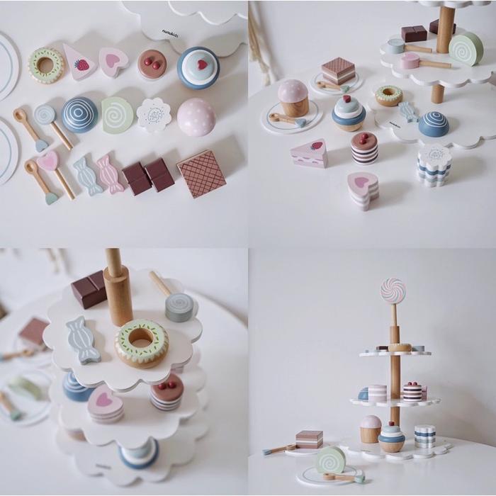 Nunukids Wooden Tea Set Cake Stand Pretend Plays Mainan Dapur Anak