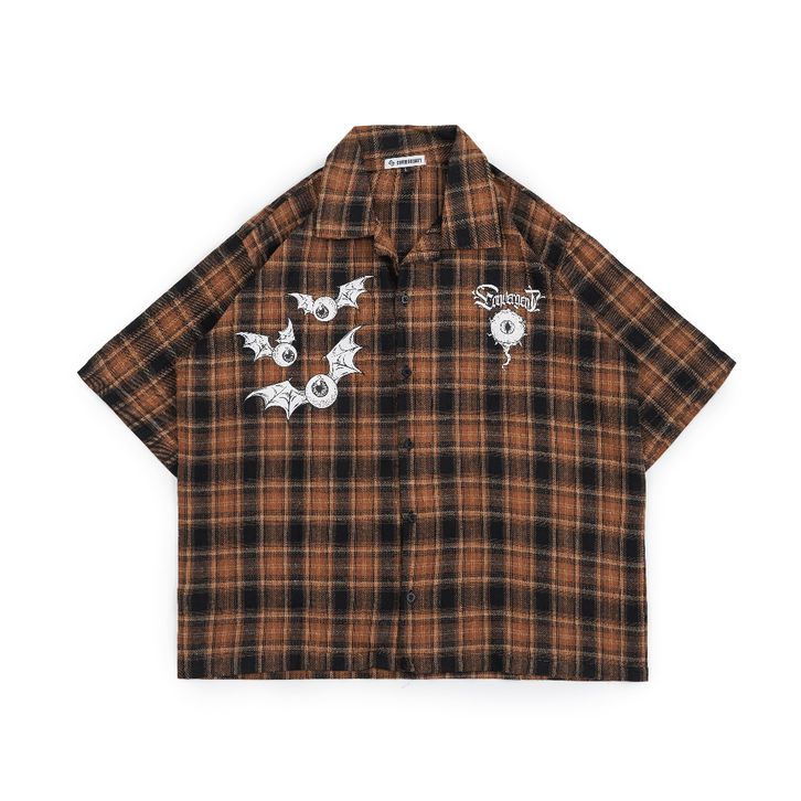 Convergent - Foul Kameja Flannel Boxy Pria Wanita Lengan Pendek Workshirt