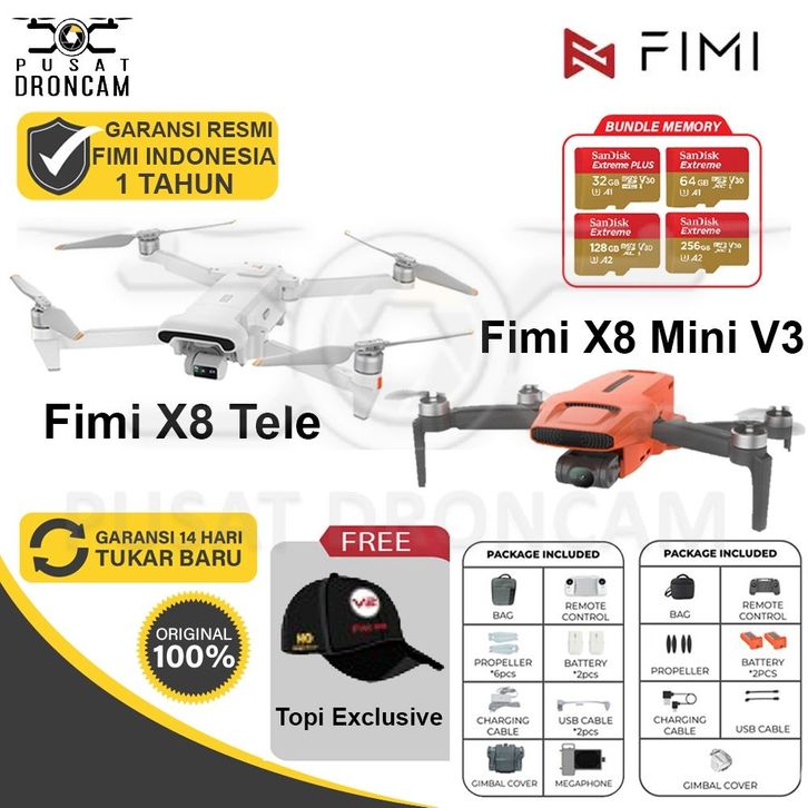 FIMI X8 TELE Drone 4K 48MP Camera 3-Axis Gimbal 10km + Megaphone - Drone Fimi Original Resmi