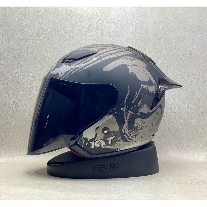 KYT DJ Maru Venom Black Doff - Flat Visor Iridium Spoiler - Helm Half Face Termurah