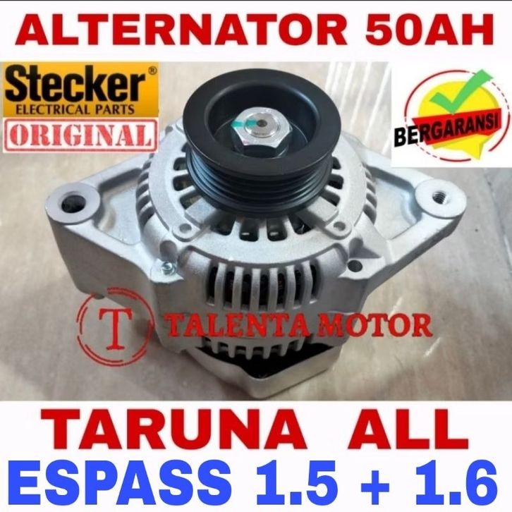 50A. BERGARANSI. ALTERNATOR ASSY TARUNA + ESPASS EFI / 1.5 / 1.6 DINAMO AMPER STECKER ORI