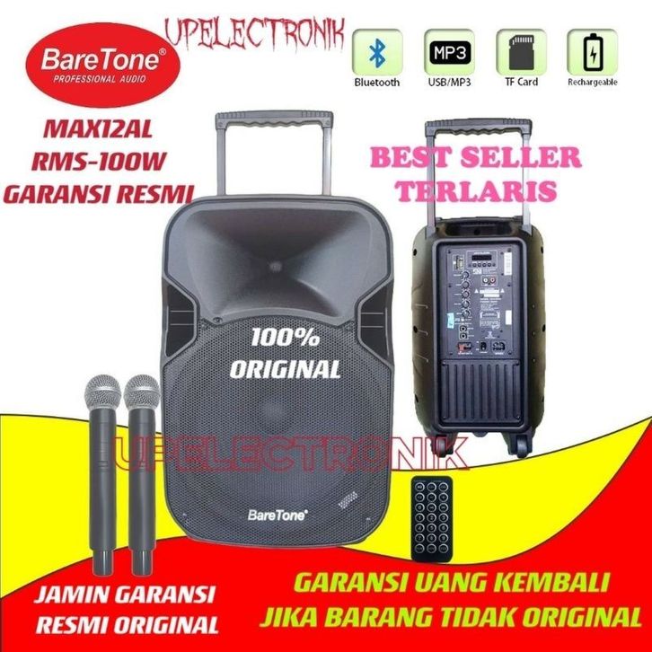 SPEAKER AKTIF PORTABLE BARETONE 12 INCH MAX12AL BLUETOOTH WIRELESS ORI