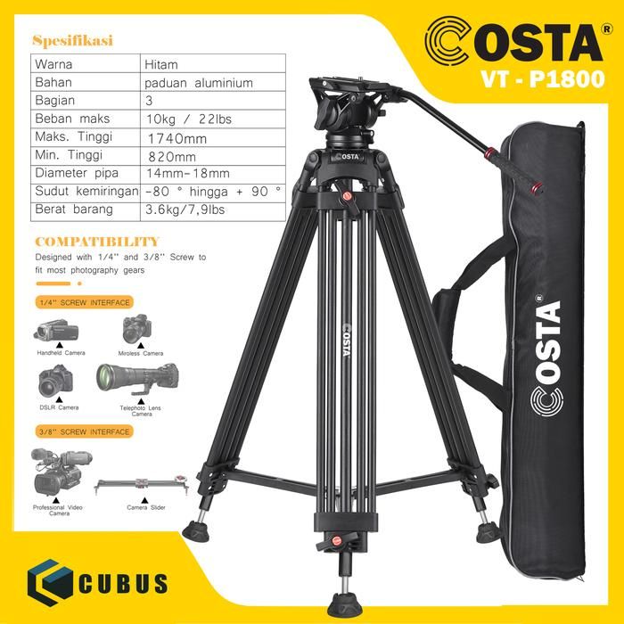 Costa Vt-P 1800 Fluid Head stand kamera Video Maker Professional Heavy Duty
