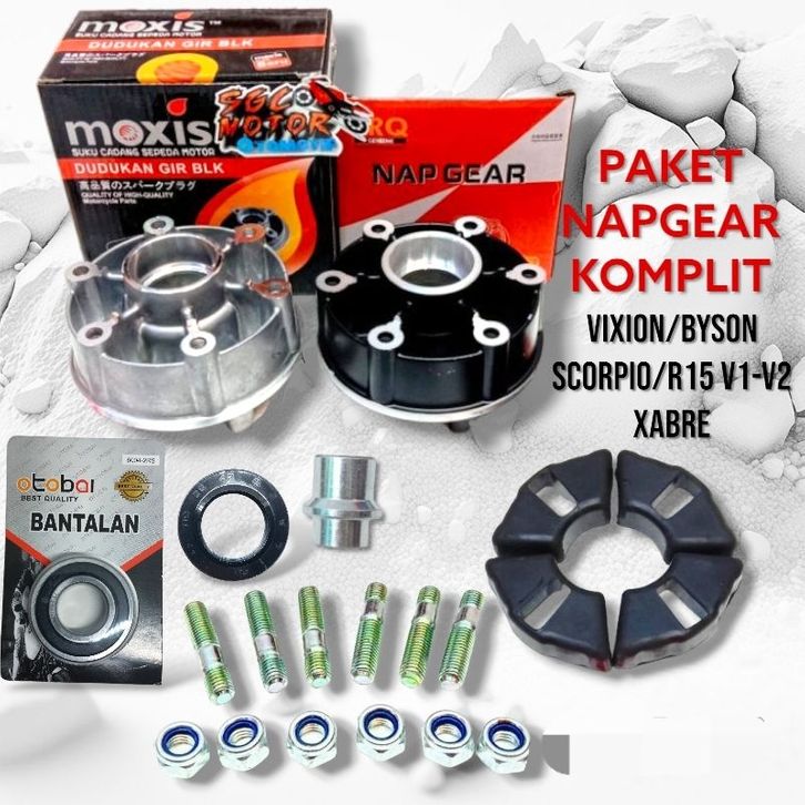 Nap Gear Original ✓ PAKET NAPGEAR BELAKANG VIXION OLD/NEW/ R15 V1-V2 / SCORPIO/BYSON HITAM/CROME