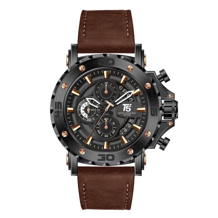 Jam Tangan Pria T5 H 3641G Original Chronograph Leather Strap Include Box T5 Exclusive