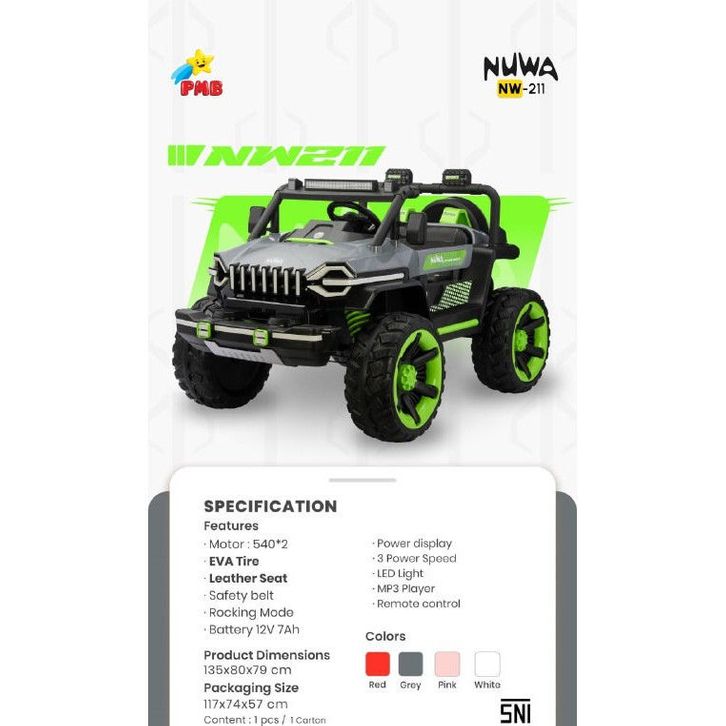 MOBIL AKI ANAK PMB NUWA 211 JEEP 12V-7AH 2GB BAN EVA/KARET NW-211