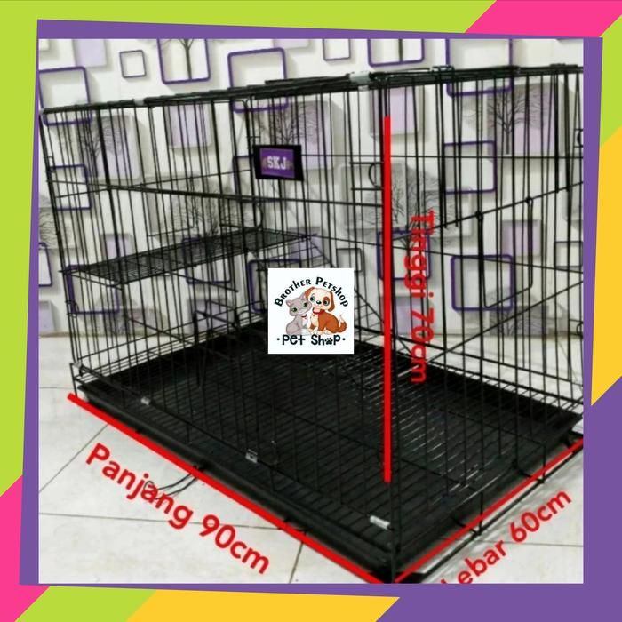 Kandang Besi Tingkat Lipat Size Xxl Jumbo Roda Kucing Anjing 90X60X70