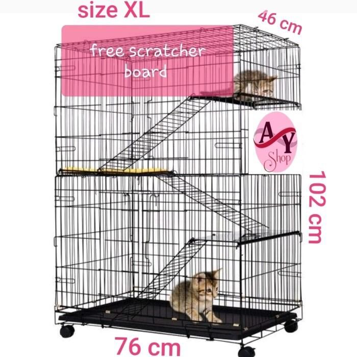Kandang Kucing Jumbo Tingkat 3 102X76X46 Roda Kaki