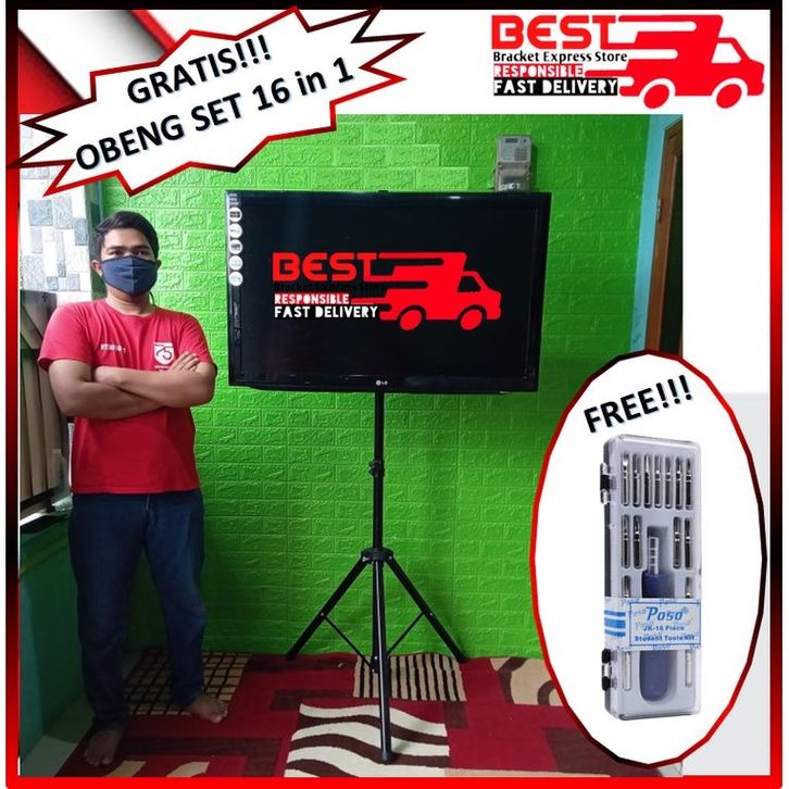 Gratis Obeng Set 16 In 1 Bracket Tv Standing Tripod 14" S/D 43" | Universal | Waterpass | High Quality | Cocok Banyak