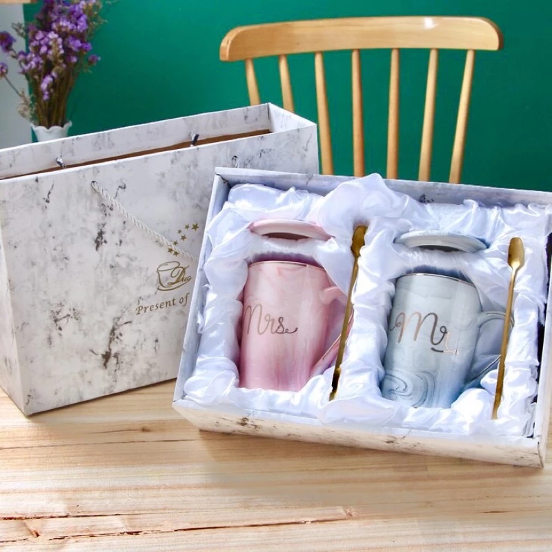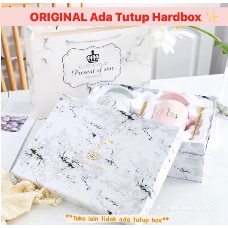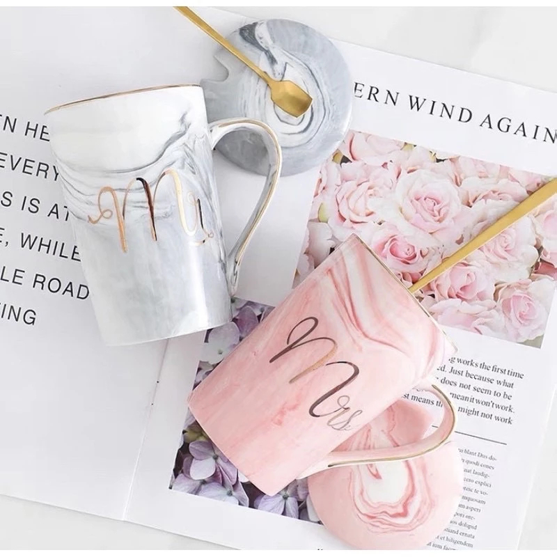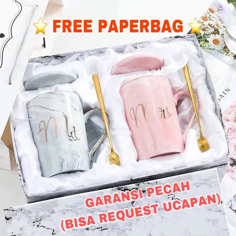 Cangkir Gelas Couple Mr Mrs Keramik 400ml With Box Mug Couple Mr Mrs Motif Marmer Marble Kado Pernikahan Wedding Hampers