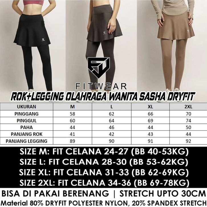 Fitwear - Rok + Legging Olahraga Wanita SASHA SUPER HIGHWAIST - M - 2XL