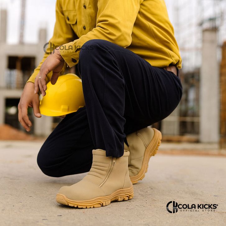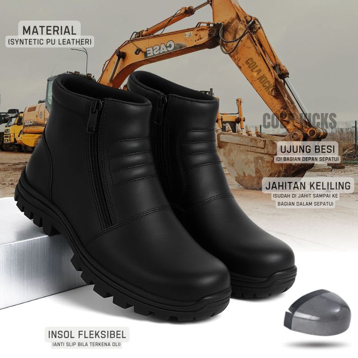 Sepatu Safety Pria Boots Slop Ujung Besi - Safety Slip on Sepatu Kerja Safety Boots Selop - Safety Shoes Slip On Prem